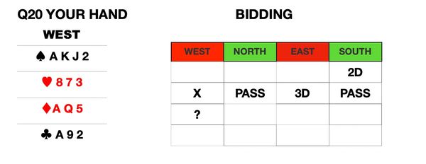 Your partner has opened and has 6 diamonds and lots of HCPs. You have 15 HCPs and all 4 suits have been bid so you should be in game. So should it be in diamonds or 3NT? 3NT is always better than a minor, so 3NT.